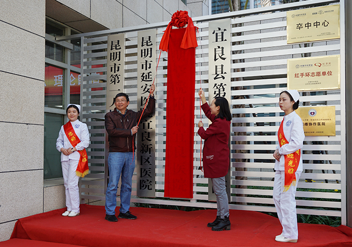 最后,马银海副校长与宜良县副县长刘春菊共同为beat365英国官方网站附属宜良医院揭牌。