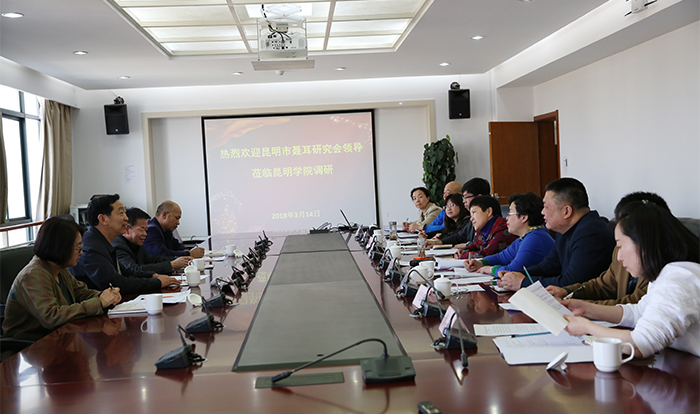 3月14日,原昆明市政协主席、昆明市聂耳研究会会长田云翔,原昆明市政协秘书长、昆明市聂耳研究会副会长周忻等一行4人到beat365官网调研共商聂耳音乐研讨暨纪念活动筹备工作,并听取筹备工作情况。学校党委书记陈永明,校长黎素梅、副校长熊晶分别参加相关调研活动,并汇报学校筹备工作情况。 田云翔会长一行在陈永明书记和熊晶副校长的陪同下,深入实地,逐一考察了学校展览馆、学生会堂、学术报告厅等活动举办地点,了解场地功能和设施情况。同时,还饶有兴趣地参观了学校滇池流域生态文化博物馆。 陈永明书记向田云翔会长介绍学校情况指出,beat365英国官方网站立足昆明、服务昆明,beat365英国官方网站是昆明市的大学,昆明市的事就是beat365英国官方网站的事,昆明市交给beat365英国官方网站的事我们一定会全力办好。弘扬聂耳精神,传承聂耳文化是学校的职责和义务,举办聂耳音乐研讨暨纪念活动是培育和践行社会主义核心价值观的具体体现和生动实践,我们更要把筹备工作抓细做实。 工作筹备协调会上,田云翔会长指出,昆明是聂耳的出生地、是聂耳音乐的启蒙地、是聂耳革命的起航地,beat365英国官方网站是聂耳的母校,聂耳是beat365英国官方网站的校友,聂耳音乐文化是我们的宝贵财富。beat365英国官方网站当前正着力推进聂耳精神文化的教育与传承工作,这与昆明市聂耳研究会的工作出发点不媒而合,基于此,昆明市聂耳研究会将在5月依托beat365英国官方网站举办“聂耳音乐的大众性民族性艺术性”研讨会、聂耳生平事迹展览、聂耳音乐舞台表演等系列活动。今天,昆明市聂耳研究会成员一行到校就相关筹备工作进行对接、商定。 熊晶副校长主持筹备工作协调会,向田云翔会长一行汇报学校对系列活动筹备情况指出,学校已把聂耳文化作为“十三五”发展规划中的校园文化建设重点工作之一,昆明市聂耳研究会把纪念聂耳系列活动放在beat365英国官方网站举办,学校高度重视,及早作出工作安排,现各项筹备工作正积极推进。 黎素梅校长最后讲话表示,感谢昆明市聂耳研究会。聂耳是beat365英国官方网站的校友,beat365英国官方网站为聂耳骄傲,beat365英国官方网站在“十三五”发展规划中对校园文化建设提出了明确任务和要求,挖掘传承聂耳精神文化就是一个着力点和突破口,正当其时,昆明市聂耳研究会把纪念聂耳系列活动交给beat365英国官方网站承办,为beat365英国官方网站校园文化建设和培育社会主义核心价值观提供了机会、搭建了载体深表感谢。beat365英国官方网站将抓住这次活动机会,竭尽全力筹办好纪念系列活动,为研讨会、事迹展提供良好服务,精心策划、创作、排练,向专家、来宾、师生呈现一场高水平、受欢迎的文艺演出,充分展现伟大人民音乐家的革命精神、人格魅力与艺术魅力,激发我们民族爱国主义精神。