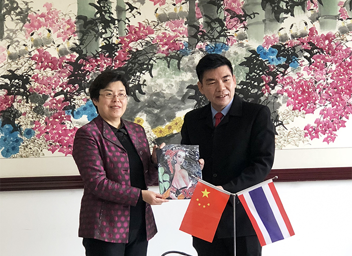 交流座谈会上,熊晶副校长为泰国斯坦佛国际大学副校长Sae Kow Apitep先生一行介绍了学校基本情况、办学条件、校际交流项目以及办学特色等内容。