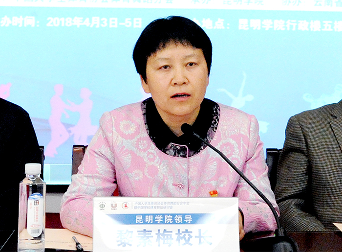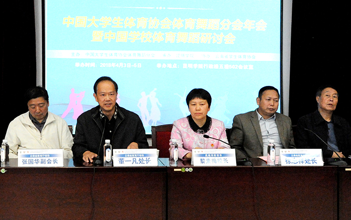 4月4日,中国大学生体育协会体育舞蹈分会年会暨中国学校体育舞蹈研讨会在beat365官网举行。beat365英国官方网站校长、中国大学生体育协会体育舞蹈分会主席黎素梅,东华大学副校长、中国大学生体育协会体育舞蹈分会副主席邱高,云南省教育厅体卫艺处处长徐忠祥,云南省教育厅民族教育处处长董一凡,云南省学生体育协会会长姜征明等领导、专家出席会议。来自全国30余所高校的领导、专家参加研讨会。