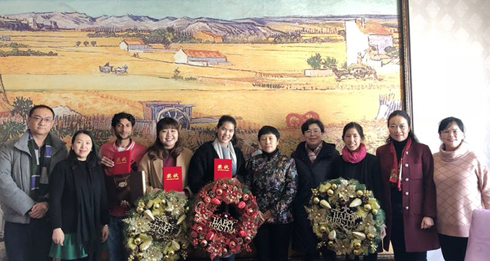 12月 25日,校长黎素梅、副校长熊晶代表学校亲切慰问了在beat365官网任教的6位外籍教师,国际交流合作处副处长陈静及国际处相关人员参加了慰问活动。