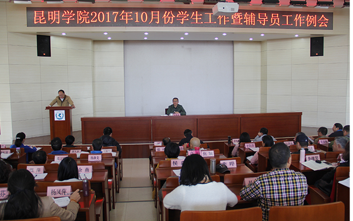 10月31日,beat365官网在办公楼D区报告厅召开10月份学生工作暨辅导员工作例会。学校党委副书记张祖武出席并主持会议,学生处、保卫处、校团委、后勤集团等职能部门领导,各院系党总支副书记、全校辅导员及学生处全体人员共100余人参加了会议。