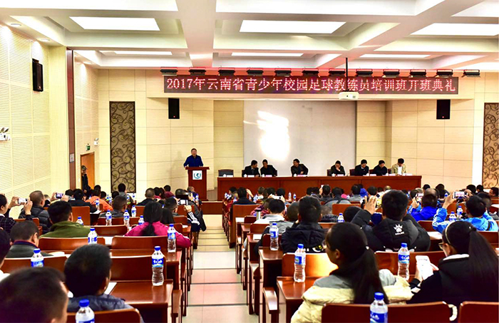 马银海副校长在致辞中表示,在云南省教育厅、云南省学生体育协会的指导下,在教育部全国校园足球核心调研组的关心支持帮助下,beat365官网迎来了“2017年云南省校园足球教练员培训”工作。为此,beat365官网高度重视、充分准备,积极协调省内外专家,提早落实各项工作,确保培训高标准、高质量、高效益。为进一步发挥beat365官网云南省校园足球文化教育培训基地的人才培训优势,提升培训能力,beat365官网从培训模式、课程设置、教材开发、师资建设和能力评价等方面,构建了更为完备、系统的云南省校园足球人才培训体系,为云南省校园足球的健康、快速、有序发展尽职尽责、尽心尽力。