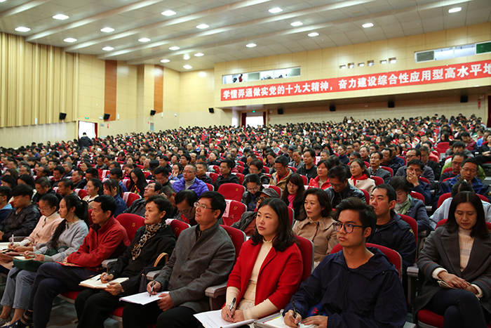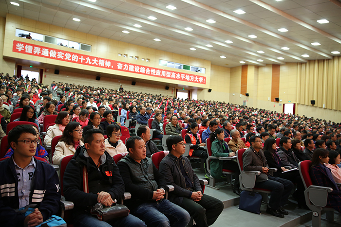 11月3日,beat365英国官方网站召开扩大会议,传达学习党的十九大精神,对全校学习宣传贯彻进一步作出安排。强调全校上下要把党的十九大精神学习好、宣传好、贯彻好,用精神武装头脑、指导实践、推动工作,把广大党员干部、师生员工的思想和行动统一到党的十九大精神上来,以习近平新时代中国特色社会主义思想为指引,奋力建设综合性应用型高水平地方大学。 学校党委书记陈永明主持会议并传达党的十九大精神,就深入学习宣传贯彻党的十九大精神提出明确要求。纪委书记王映平,副校长熊晶、董建华、沈凡,副校级领导孙勇出席会议。 陈永明书记从党的十九大的基本情况、报告的主要精神、中央纪委工作报告的主要内容、党章修改的主要内容、十九届一中全会精神的主要内容五个方面,系统归纳了过去5年取得的历史性成就和发生的历史性变革,深刻阐述了习近平新时代中国特色社会主义思想的时代背景、核心要义、创新观点和重大贡献,阐述了中国特色社会主义进入新时代、我国社会主要矛盾变化等重大论断,对“两步走”“两个阶段”的战略安排,对经济社会发展的重大部署,对坚定不移全面从严治党进行了系统阐释解读。报告主题鲜明,重点突出,数据详实,资料丰富,运用生动鲜活的数据、案例,系统透彻、深入浅出,具有很强的针对性和感染力。 陈永明书记指出,党的十九大是在全面建成小康社会决胜阶段、中国特色社会主义进入新时代的关键时期召开的一次十分重要的大会,是在新的历史起点上开启党和国家事业新征程的一次大会,是一次不忘初心、牢记使命、高举旗帜、团结奋进的大会,在党和国家发展史上具有重大里程碑意义,是迈向中华民族伟大复兴的重要一步。认真学习宣传贯彻党的十九大精神,关系党和国家事业继往开来,关系中国特色社会主义前途命运,关系最广大人民根本利益,也事关学校综合改革发展进程,动员广大党员干部、师生员工的思想和行动统一到党的十九大精神上来,用精神武装头脑、指导实践、推动工作,奋力建设综合性应用型高水平地方大学,培养社会主义合格建设者和可靠接班人具有重大现实意义。 陈永明书记强调,学习宣传贯彻好党的十九大精神,是学校当前和今后一段时期的首要政治任务。学懂、弄通、做实党的十九大精神,最重要的是学习贯彻习近平新时代中国特色社会主义思想,这是党的十九大精神的灵魂,是我们把握党的十九大精神的“纲”,是我们做好一切工作的主线。要抓住这条主线,在全校迅速兴起学习宣传贯彻党的十九大精神的热潮,使党的十九大精神走进支部、深入班级、融入社团,做到人人知晓,把干部、师生力量凝聚到实现党的十九大提出的各项目标任务上来,让习近平新时代中国特色社会主义思想在学校形成生动实践。 陈永明书记对学习宣传贯彻党的十九大精神作出具体安排,强调:一要抓好学习,准确领会精神实质。全校各党总支、直属党支部,全体党员要原原本本学习党的十九大报告和新党章,准确把握报告体现的本质内涵和精神实质,切实在学懂弄通做实上下功夫,切实将思想和行动统一到党的十九大精神上来,用党的创新理论武装头脑、指导实践、推动工作。二要抓住目标定位,落实好报告对教育工作提出的新要求。广大教师要以立德树人为主线,以培养社会主义建设者和接班人为目标,深入学习、全面贯彻党的十九大精神,努力把握教育历史定位,明确教育根本任务,理解教育本质要求,突出教育中国特色,将党的十九大报告中有关教育的精神实质内化于心,外化于行,为把beat365英国官方网站建设成为全国知名、特色鲜明的综合性应用型高水平地方大学不断努力。三要抓好贯彻落实,做到“三个结合”。全校各单位要结合党的十九大对教育工作的重大部署,联系beat365官网“转型发展、内涵提升、重点突破”的思路,把党的十九大精神切实在工作中贯彻下去、体现出来,努力做到“三个结合”。一是要把贯彻落实党的十九大精神与贯彻落实全国、全省高校思想政治工作会议精神结合起来,进一步筑牢高校师生理想信念。二是要把党的十九大精神贯彻融入高校“两学一做”学习教育和一流党建创建中,着力提升高校党委的领导核心作用、各党总支、直属党支部及党支部的战斗堡垒作用和党员的先锋模范作用。三是要用党的十九大精神指导beat365官网全面深化改革工作,以问题、目标、效果为导向,以改革为手段,聚焦转型和内涵,不断推动学校又好又快发展。 会上,熊晶副校长宣读了《中共beat365英国官方网站委员会关于成立“学习贯彻党的十九大精神”beat365英国官方网站宣讲团的决定》,对宣讲工作提出要求:一要提高政治站位,认真备课,精准宣讲;二要牢牢把握“学懂弄通做实“的宣讲要求,突出难点重点;三要走进支部深入班级,实现校园宣讲全覆盖。 陈永明书记等与会校领导为24名“学习贯彻党的十九大精神”beat365英国官方网站宣讲团成员和21名“学习贯彻党的十九大精神”学生宣讲团成员颁发聘书。这标志着“学习贯彻党的十九大精神”beat365英国官方网站宣讲团正式成立并全面开讲。宣讲团成员将根据不同的对象、不同的需求,走进支部、深入班级、融入社团,同党员干部、师生员工开展面对面、互动式的宣讲,扎实推动党的十九大精神走进基层、走进师生,在全校