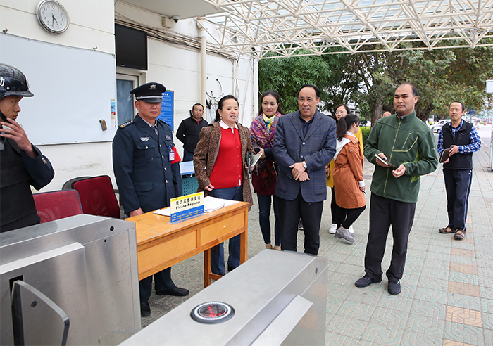 10月17日,学校党委书记陈永明、党委副书记张祖武率党办、保卫处、后勤集团、国际交流合作处、现代教育技术中心等部门负责人深入校园安全防范重点区域、重点部位进行安全检查、指导工作。强调,校园安全无小事,安全责任重于泰山,全校上下要增强安全意识,牢固树立安全发展理念,以高度的政治责任感,把校园安全工作做细抓实,确保党的十九大期间校园安全稳定和谐。 陈永明书记一行巡查了校园安全监控中心、校园门禁执勤点、实验室危化品管理室、学生宿舍、食堂等安全防范重点区域、重点部位,对校园监控、门禁系统设施建设,实验危化品管理,学生宿舍管理,食品卫生管理等人防、物防、技防情况进行全面检查,对存在的问题提出明确整改要求。 陈永明书记强调,安全无小事,全校上下要充分认识校园安全工作的极端重要性。校园安全稳定工作事关学校改革发展大局,事关学生健康成长与社会和谐稳定,事关每一位师生的切身利益,要坚持平安是学校发展第一要素、是做好一切工作的重要前提,是一项重大的民生工程,更是一项重要的政治任务。安全工作要坚持“谁主管谁负责”的原则,各司其职落实责任、开展风险隐患排查工作;坚持抓早抓小,力争在最早的环节、最低的层级、最少的成本,解决最大的问题,实现最佳的效果;坚持立行立改,对发现的问题要第一时间、最快的速度解决;坚持依法依规管理,对有毒试剂及易制毒化学品的管理要按照行业的相关规定严格管理。 陈永明书记要求,学校各单位要把细、严、实的要求贯彻到校园安全工作各个方面、各个环节,强化安全意识,落实安全责任。加强校园安全技术的更新和安全设备的完善,推进技防设施建设,采取人防、物防、技防等行之有效的措施,构建校园安全体系,织密织牢安全“防护网”,扫除监管“盲区”和“死角”。做到能及时发现安全隐患、出现安全事故能做到快速反应、及时处置,确保校园长期稳定、平安和谐,为学校发展提供强有力的保障支撑。