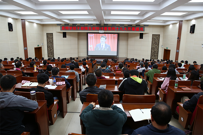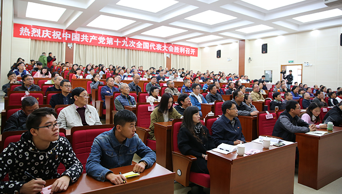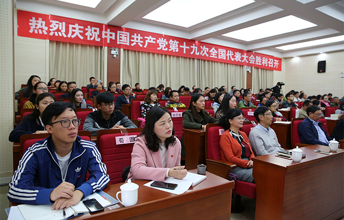 盛世中华奏凯歌,盛会鼓舞人心、报告催人奋进。10月18日上午,举世瞩目的中国共产党第十九次全国代表大会在北京人民大会堂隆重召开,习近平同志代表第十八届中央委员会向大会作了题为《决胜全面建成小康社会夺取新时代中国特色社会主义伟大胜利》的报告。习近平指出,中国共产党第十九次全国代表大会,是在全面建成小康社会决胜阶段、中国特色社会主义进入新时代的关键时期召开的一次十分重要的大会。大会的主题是:不忘初心、牢记使命,高举中国特色社会主义伟大旗帜,决胜全面建成小康社会,夺取新时代中国特色社会主义伟大胜利,为实现中华民族伟大复兴的中国梦不懈奋斗。 学校党委组织全体中层干部和师生员工代表集中收看党的十九大开幕盛况。党委书记陈永明,校长黎素梅,党委副书记张祖武,纪委书记王映平,副校长董建华、马银海、沈凡,副校级领导孙勇等党政领导班子成员与干部、师生员工们一同聆听习近平同志代表十八届中央委员会向大会作的报告。各党总支、直属党支部也结合实际,利用电视、广播、网络等多种途径,采取集中与分散的形式,组织师生收听收看。习近平总书记作的报告引起师生强烈反响。 大家一致认为,习近平同志向大会所作的报告,高举中国特色社会主义伟大旗帜,全面总结了过去五年的伟大成就和历史性变革,系统阐述了构成新时代坚持和发展中国特色社会主义的基本方略,进一步明确了未来一个时期党和国家事业发展的大政方针和行动纲领,科学谋划了到本世纪中叶的战略性发展目标和宏伟蓝图,为实现中华民族伟大复兴指引了前进的方向。报告旗帜、主题鲜明,内涵丰富,高屋建瓴,思想深刻,鼓舞人心,催人奋进。 陈永明书记指出,党的十九大胜利召开是一次具有重大历史意义的会议。大会标志着中华民族伟大复兴的中国梦将开启一个新的具有重大历史意义的新篇章。大会也向世界展示了以习近平同志为核心的党中央高举中国特色社会主义伟大旗帜,全党全国各族人民向着中华民族伟大目标奋勇前进,勇往直前。大会让我们深深地感受到我们国家发生的具有重大意义的历史性变化,也让我们深深地感受到国家取得的伟大成就。这些成就的取得令我们深受鼓舞,也倍感自豪。 陈永明书记强调,beat365英国官方网站作为一所高等院校肩负着为中国特色社会主义培养合格建设者和接班人的重任。学习好贯彻好党的十九大精神,用党的十九大提出的新理论新思想新要求武装广大干部、师生,这将是当前最重要的政治任务。我们作为高校要始终回答好怎么样培养人,培养什么样的人这一重大历史问题。要坚持中国特色社会主义办学方向,坚持立德树人这一根本任务。我们将在党的十九大精神的指引下深化学校教育体制机制改革,推动学校教育、科研和人才培养工作。 “过去五年,党的事业、国家的事业取得的进步和发展,每一个共产党员、每一个中国人都真切感受到巨大的变化,我为国家的日益富强倍感自豪,这一切和党的坚强领导密不可分。”人文学院党总支书记陈嘉教授表示,作为一名高校的党员教师,要牢记习近平总书记的重要讲话精神,牢记使命,把教书育人和为人民服务的宗旨贯穿到具体的工作之中,认真学习、努力工作,不辜负师生的期待和信任,在新的时代争做一名优秀的共产党员。 马克思主义学院形势与政策教研室主任苟园副教授说,看到在过去五年以习近平同志为核心的党中央带领全国人民迎难而上、革故鼎新、砥砺奋进取得的辉煌成就,由衷感到自豪和骄傲。作为一名高校思想政治理论课教师,我将认真学习党的十九大报告,牢记高校教师的使命与责任,围绕立德树人的中心工作,坚持不懈传播马克思主义理论,为学生的一生成长奠定科学的思想基础,为社会主义现代化建设培养合格建设者和可靠接班人;以开拓进取的精神为实现中华民族的伟大复兴贡献自己的力量。 “作为一名高校的普通党员教师,我认为理想信念是共产党人安身立命之本和政治灵魂,所以我们要把立德树人作为使命,把为共产主义教育事业奋斗终身作为自己的职责,为党的教育事业鞠躬尽瘁。”国际交流合作处留学生管理科科长陆向红老师表示,在党的十九大精神指导下,发挥昆明地处辐射南亚、东南亚的地缘优势和学校办学特色的吸引力,进一步做好南亚、东南亚留学生工作,搭建交流桥梁,传播博大精深的中国文化,培养留学生知华、爱华、亲华的情感,为“一带一路”沿线国家的经济文化发展添砖加瓦。 “过去五年我国取得的巨大成就,我作为一名中国人而自豪。”人文学院2015级历史学专业学生邓博文表示,我作为历史学师范类专业的学生,今后在自己的专业领域上不断努力学习钻研,将来在教师岗位上秉承立德树人、以身为范精神,把自己的知识传授给学生,让他们懂得老一辈革命家的艰辛奋斗历程,懂得新中国成立的来之不易以及我国的光辉历史,为实现中华民族伟大复兴的中国梦而不懈奋斗。我会继续严格按照党章的要求履行一名共产党员的职责,不忘初心、牢记使命,继续前进。 “地铁、高铁如期开通,让我切身感受到出行的方便和‘中国速度’。”自动控制与工程管理学院2016级交通运输专业学生赵茜茜自豪地说,昆明创建文明城市,基础设施得到进一步的完善,人民素质不断提高,城市凝聚力和竞争力进