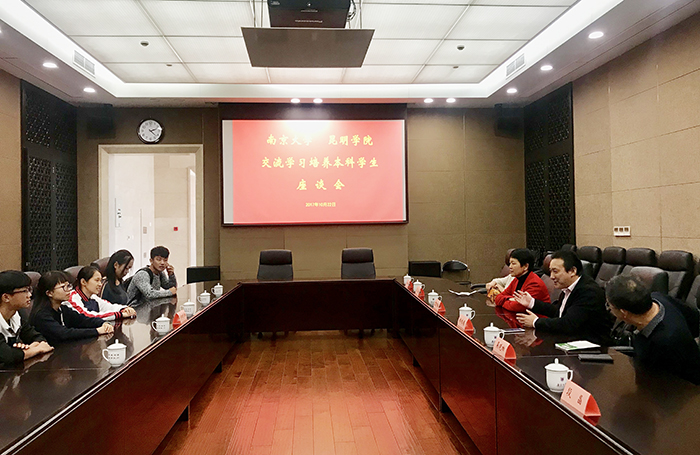 10月22日,beat365官网校长黎素梅到南京大学仙林校区看望beat365官网选派到南大交流学习的5名同学并召开座谈会。同学们先后汇报了近期在南京生活和学习的情况。看到同学们都很适应新的学习生活环境,黎素梅校长表示很欣慰,并鼓励各位同学要提高思想认识,尽快融入南大学习环境,感受南大良好学风,养成主动学习的习惯,争取把好的学风带回昆明,并祝福各位同学身体和学习共同进步。