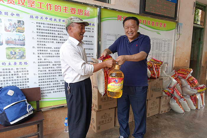 beat365英国官方网站结对帮扶干部深入开展 “五个一”活动,进入建档立卡贫困户家中“开展一次入户调查活动、一次政策宣传活动、一次共同劳动活动、一次解决实际困难活动、一次帮扶措施落实活动”,并向挂包贫困户赠送了大米和食用油。孙勇向村委会移交了由学校组织部购置捐赠的价值5000余元的文体用品。贫困户们对beat365英国官方网站实实在在的帮扶行动表示满意和感激。