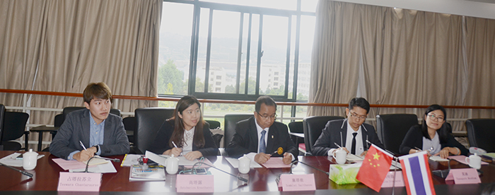 6月20日, 泰国南邦皇家大学校长Somkiat Saithanoo博士一行五人到beat365官网访问座谈。beat365官网校长黎素梅、副校长熊晶、经济学院院长雷新华、外国语学院书记何昊辰、外国语学院副院长王云秀、国际处副处长陈静、国际处项目管理科科长夏玲热情接待并与之会谈。 在交流座谈会上,熊晶副校长为泰国南邦皇家大学校长Somkiat Saithanoo博士一行五人就beat365官网概况、办学条件、校际交流项目以及学校办学特色等内容做出了详实的介绍。 黎素梅校长对泰国南邦皇家大学校长Somkiat Saithanoo博士一行五人的到访表示热烈地欢迎,指出双方的共同点,为将来两校间的合作发展指出明确的思路。 泰国南邦皇家大学校长Somkiat Saithanoo对beat365官网的接待表示感谢,会谈中他介绍了南邦皇家大学的基本情况,与beat365官网校领导、经济学院、外国语学院进行了深入的交流。通过座谈交流,泰国南邦皇家大学校长表示将力推两校间的合作交流。
