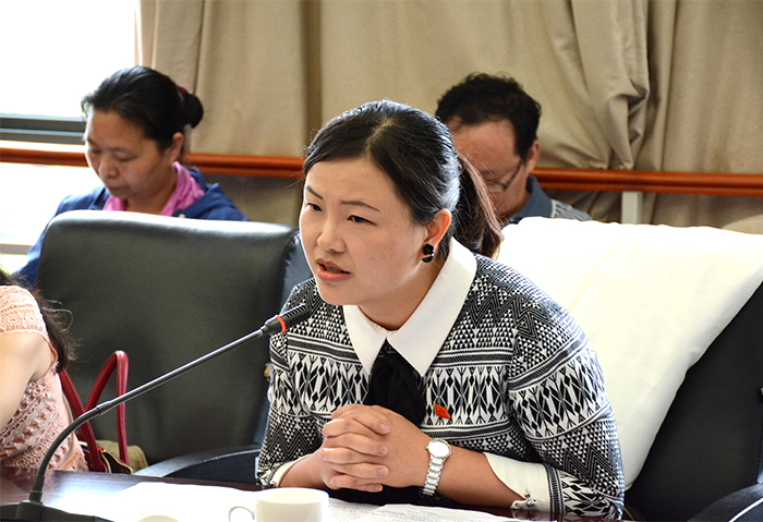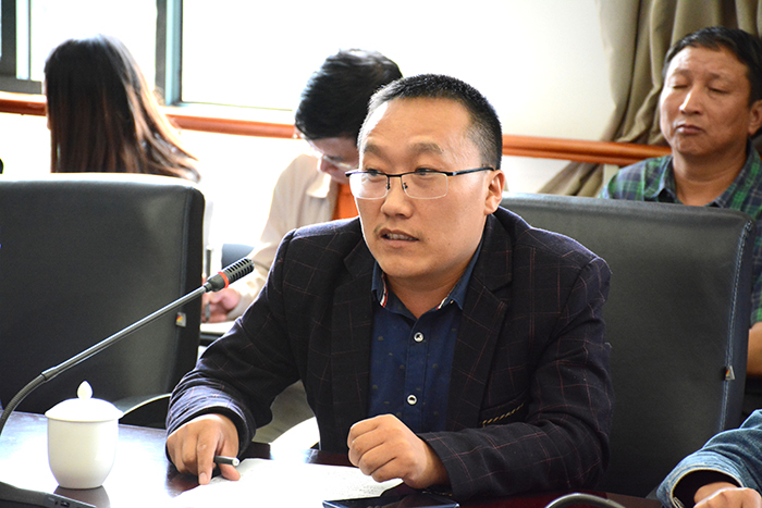 离退休党员代表李建民发言 马克思主义学院副教授苟圆发言 民盟beat365英国官方网站总支主委、人文学院副教授郭鹏群发言 自机学院党总支干事学生支部书记普翠萍发言 学生党员代表王世香同学发言
