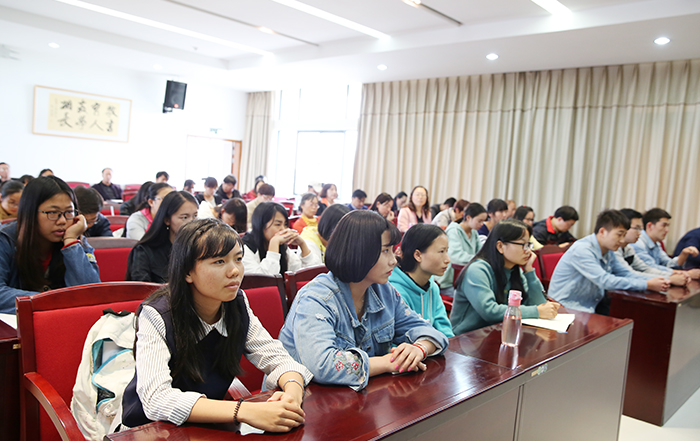 到场聆听报告的有马克思主义学院、经济学院、社会管理学院、教师教育学院、人文学院、昆明科学发展研究院办公室、昆明滇池(湖泊)污染防治合作研究中心、昆明南亚东南亚合作战略研究院等单位干部、老师代表和相关院系学生代表。