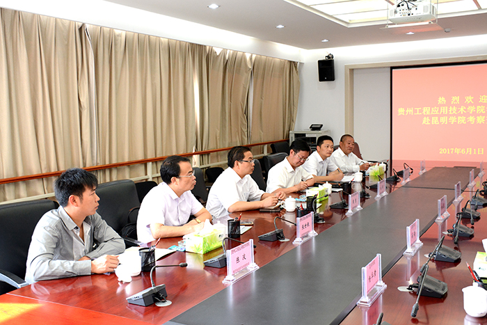 6月1日,贵州工程应用技术学院副校长池涌率后勤管理处、保卫处、后勤管理处食品监管科、保卫处监控系统等部门负责人一行到beat365官网交流座谈。