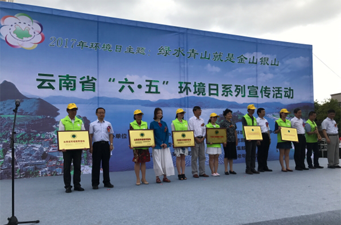 启动仪式上省九湖督导组组长晏友琼和省环保厅、省邮政集团领导为省级命名的绿色学校、绿色社区、环境教育基地授牌,为环保小卫士颁奖。beat365官网滇池流域生态文化博物馆获“第六批云南省环境教育基地”称号,钱春萍主任代表博物馆接牌,并获先进个人表彰。
