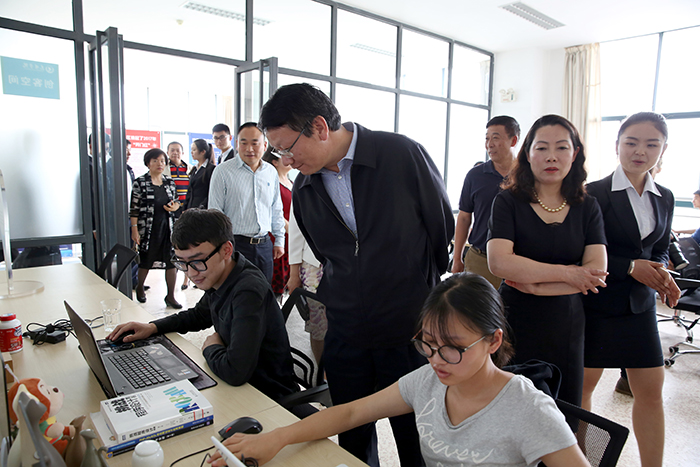开业典礼结束后,学校领导一行与云南农垦集团副总经理龙晖共同参观视察了"爱云咖"校园主题创客空间,在众创空间大学生管理团队负责人的引领下,逐一视察了入驻创客空间的十五支创业团队并与创业团队成员进行了亲切的交谈。学校领导一行对项目的建成给予了充分肯定,并表示,借此次创客空间启动为契机,希望项目逐渐成为校企合作的桥梁和纽带,切实整合创新资源、完善服务平台、营造良好环境,推动创新创业、专业服务等深度融合发展,努力打造成为青年学生创新创业的"筑梦摇篮"和"圆梦乐园"。