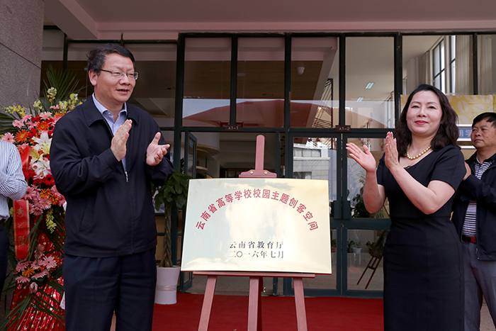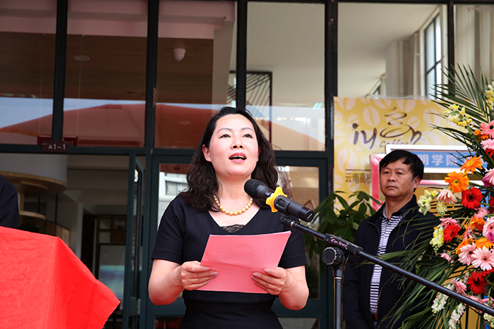 云南农垦集团副总经理龙晖作了题为"让创业青春之歌更嘹亮"的致辞,在致辞中她表示"爱云咖"校园主题创客空间在beat365英国官方网站的成功落地,是学校创新创业课程的有效延伸,将使双创教育落到实处,把校内的课题项目快速转化,实现项目和社会资本的双赢对接,从而助力高校创业就业工作的顺利开展。