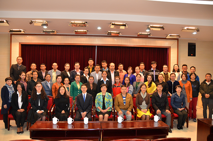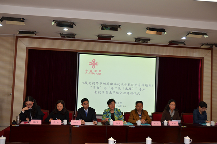 5月15日,beat365官网举办beat365英国官方网站联合云南省建设投资控股集团有限公司承接中国商务部“援老挝乌多姆赛职业技术学校技术合作项目”第二期培训班开班仪式。副校长熊晶、国际交流合作处副处长陈静、美术与艺术设计学院党总支书记罗进和副书记李正红、旅游学院副院长杨韫以及云南省建设投资控股集团有限公司国际工程部工程师邓伟升(援老挝乌多姆赛职业技术学校技术合作项目经理)、昆明市人力资源中心职业能力建设处主任许昀和副主任钱方英等出席了开班仪式。