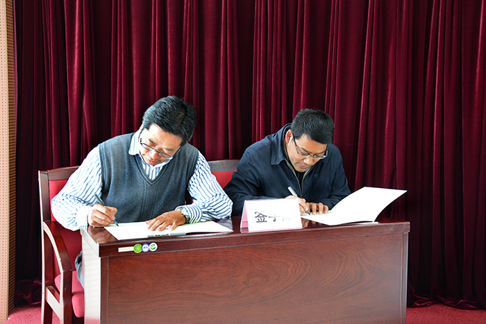会上,保密委副主任钱海鼎代表校保密委与昆明发展研究院、信息学院负责人签订2017年《保密工作责任书》,参会人员在《涉密人员保密承诺书》上签字。