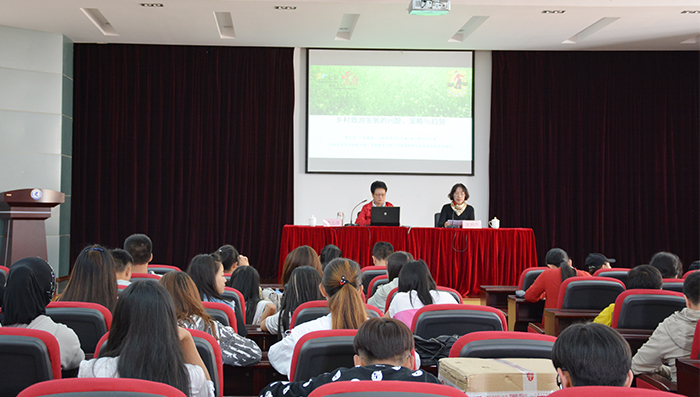 窦志萍教授从目前的乡村旅游现状及模式、乡村旅游发展主要面临的问题、解决策略和发展趋势等几个方面对我国的乡村旅游进行了深入分析。针对传统乡村旅游和现行的乡村游所面临的主要问题提出了八大转型策略。认为,乡村旅游的开发经营要规避城市社区化、公园化和人造景观化,要坚守乡村形态、生态、文态和业态,要认真思考怎么让游客想来、留下来、再来,以品德之心,品位之味,品质之标,做品牌文章。通过对一些典型项目的分析,把乡村旅游事业和同学们今后的就业联系起来,大家深受鼓舞,反应热烈。