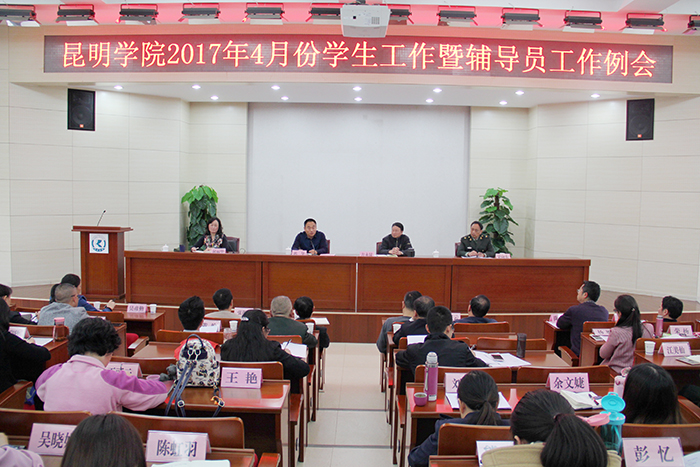 保卫处、武装部、学生处分别通报和安排布置了近期学生工作。保卫处通报了近期昆明市创建“文明城市”工作中,对beat365官网西门外大学路占道经营、摆摊设点等环境治安整治情况及相关要求;武装部通报了beat365官网2016年大学生征兵工作情况,传达了全省2017年征兵工作会议精神,对beat365官网2017年的征兵工作进行了安排布置,下达了征兵任务;学生处对beat365官网2017年省级辅导员年度人物和大学生年度人物的评选推荐、辅导员学习全国高校思想政治工作会议精神、2016-2017学年“优良学风班”创建中期检查、“文明宿舍、特色宿舍、党员示范宿舍”创建、近期评奖评优等情况进行了通报和说明,对近期将组织的“看照片讲故事”大赛、“中华优秀文化”知识竞赛、校园安全教育月相关活动及校园网贷、2017届毕业生教育、校内外辅导员培训、留学生教育管理、五一小长假学生的安全教育管理等工作进行安排布置并提出相关要求。