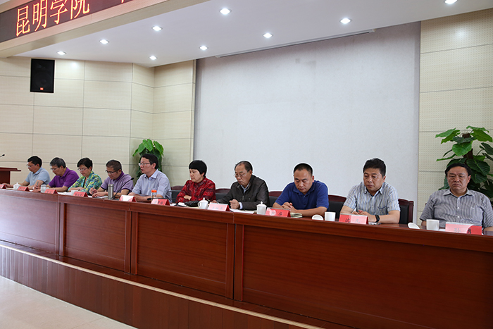学校全体中层干部,党委办公室、校长办公室、组织部、人事处、教务处、科研处全体人员,昆明科学发展研究院、昆明滇池(湖泊)污染防治合作研究中心、昆明南亚东南亚合作战略研究院、高教研究与发展规划中心科级以上干部参加会议。