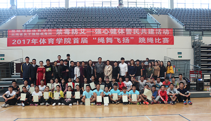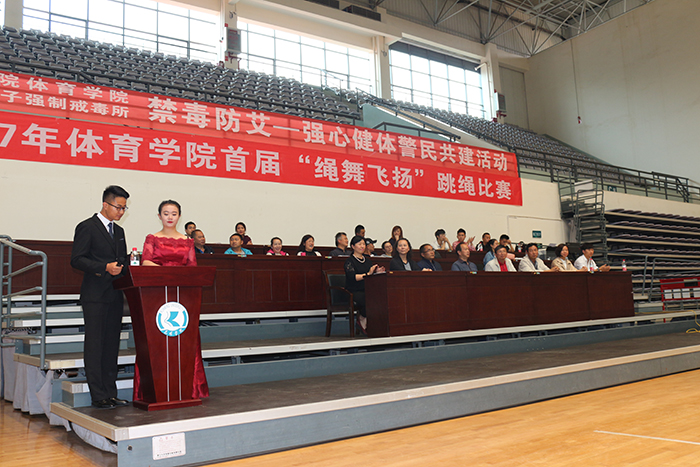 4月14日,体育学院在综合体育馆举行了首届“绳舞飞扬”跳绳比赛,云南省教育厅体卫处处长董一凡、beat365官网副校长马银海莅临指导。