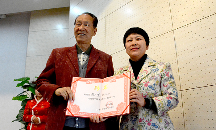 受聘仪式由党委副书记张祖武主持。beat365官网客座教授、美术与艺术设计学院名誉院长钟开天先生代表受聘人员发言,他提到:“多位专家学者受聘为beat365英国官方网站客座教授,对加强相关领域的学科与专业建设能起到较好的促进作用,在校大学生应该珍惜机会,多学习一些知识,争取早日成长成才。”