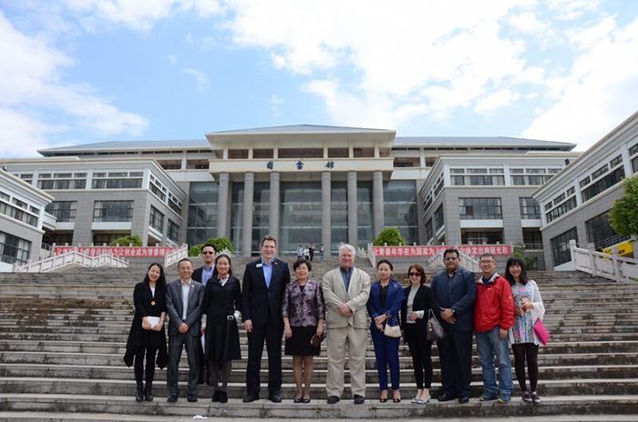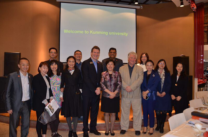4月24日,加拿大不列颠哥伦比亚省国际教育协会执行主任马丁博士、兰加拉学院首席执行官诸霖德先生、国际教育部韩锡安先生、加拿大优联咨询有限公司陈永玲女士、在云南省教育厅国际交流合作处龙薇副处长的陪同下访问beat365英国官方网站。副校长熊晶、国际处副处长陈静、旅游学院院长田芙蓉、学前与特殊教育学院副院长李里、校长办公室王祖辰以及相关人员热情接待并与之会谈。