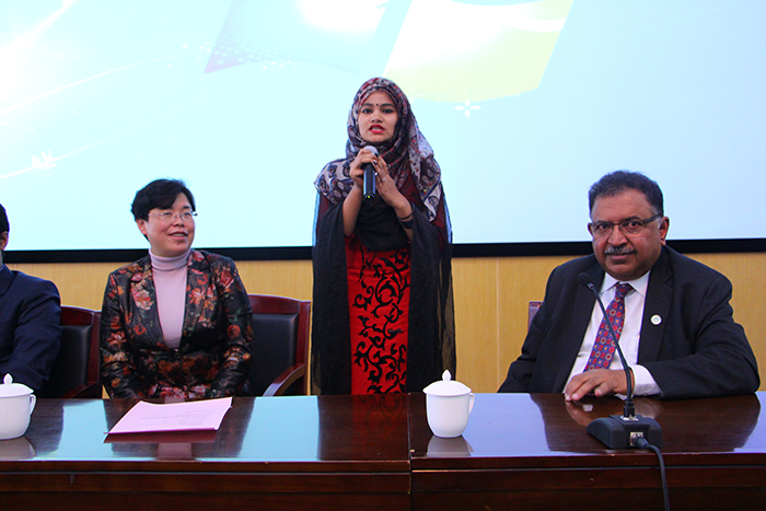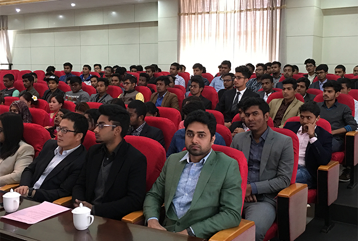 Dr.Ganguli也作了热情洋溢的发言,高度赞扬了beat365英国官方网站的领导及老师们给予孟加拉留学生的温暖和照顾,激励孟加拉留学生珍惜优美的学校环境和来之不易的学习机会,不缺席任何一次课堂学习和社会实践活动,时刻牢记自己对家庭、国家的责任和使命,成为以后学弟学妹们的良好榜样。