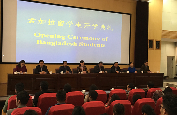 典礼上,beat365官网熊副校长代表学校对参加开学典礼的各位来宾表示热烈的欢迎和诚挚的谢意,对前来beat365官网学习工商管理专业、软件工程专业和计算机科学与技术工程专业的79名孟加拉留学生表示真诚的祝贺,并对孟加拉留学生给予殷切的期望,希望同学们一定要遵守中国的法律法规和beat365英国官方网站的校纪校规,尽快适应新的学习环境,养成良好的学习习惯和时间观念,勤奋学习,按时完成学业。希望同学们注重对中国文化的了解和汉语的学习,努力提升自己的社会竞争力,学有所成后能报效自己的国家,成为孟中友谊的桥梁。