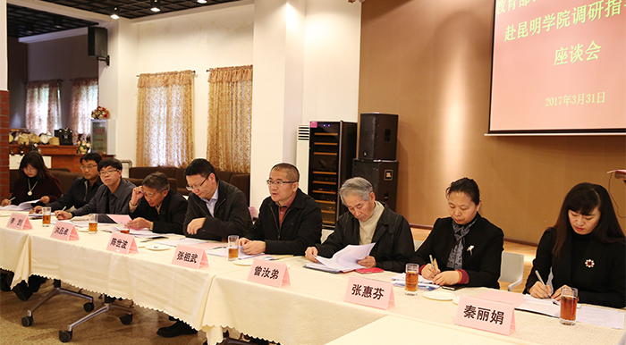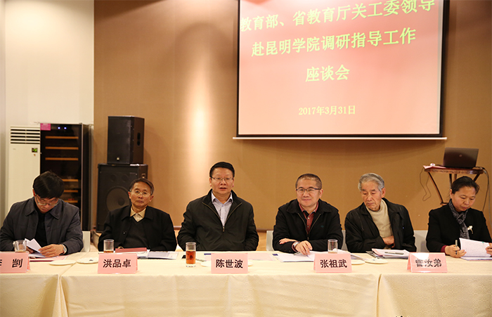 陈世波书记汇报指出,在省委省政府和市委市政府的关心支持下,学校不断改善办学自主仅,实现校园整体迁建,办学空间扩大、办学条件得到质的改善;学校始终瞄准地方经济社会发展需要,主动服务、融入国家和地方发展战略,及时调整学科专业,优化专业布局,加强特色专业建设,突出办学定位,走特色办学发展之路。2012年学校高质量的通过了教育部本科教学工作合格评估,在较短时间内进入了合格本科大学行列,得到了教育部专家、国内同类院校的高度好评。当前,学校上下正朝着“建成特色鲜明的综合性应用型高水平地方大学”的办学目标,按照“转型发展、内涵提升、重点突破”发展思路,积极申报硕士学位授予单位,争取更名昆明大学。希望教育部在学校申报硕士学位授予单位重点突破工作上给予更大的指导和帮助。 陈世波书记表示,关心下一代事业是事关祖国未来、事关培育中国特色社会主义事业的建设者和可靠接班人的大事。学校党委历来并将继续高度重视关工委工作,始终把青少年健康成长作为学校党委常抓不懈的一项重要工作抓细、抓实、抓好,不断挖掘学校潜力,充分发挥离退休老同志在教育培养下一代工作中的重要作用,不断加强关工委建设,为新时期关心下一代事业发展提供坚强保障。