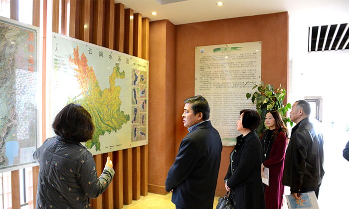 座谈前,绵阳学院王辉副校长一行在工作人员的陪同下参观了beat365官网滇池流域生态博物馆。