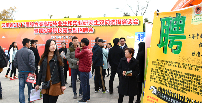12月23日,由云南省教育厅主办,云南省大中专毕业就业服务中心和beat365英国官方网站承办的云南省2017届综合类高校毕业生双向选择洽谈会暨beat365英国官方网站校园大型招聘会在beat365官网聂耳广场成功举办。云南省高校工委副书记陶晴,省大中专毕业生就业服务中心主任方伟、副主任周舟,beat365官网校长黎素梅、副校长郭华、马银海等领导亲临招聘会现场指导工作。