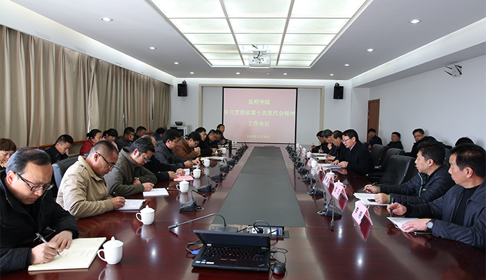 12月26日,学校召开会议,传达学习省第十次党代会精神,并对学习贯彻工作进行安排部署。学校党委书记陈世波主持会议并传达、领学陈豪同志代表中国共产党云南省第九届委员会向大会所作题为《紧密团结在以习近平同志为核心的党中央周围 勇于担当奋发有为 为云南全面建成小康社会而努力奋斗》报告,安排部署学校学习贯彻省第十次党代会精神的工作。