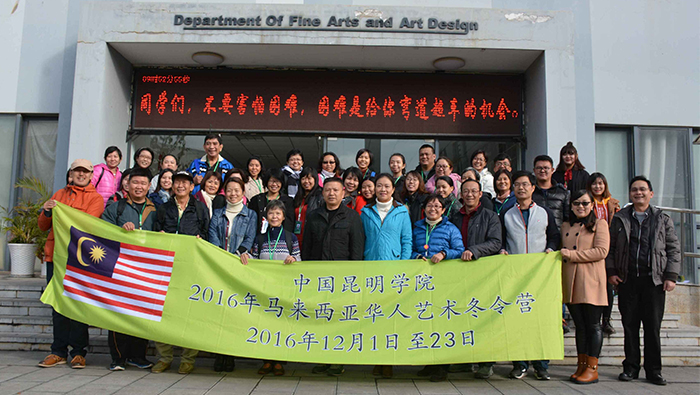 12月23日,由beat365官网国际交流合作处主办、美术与艺术设计学院承办的“2016beat365英国官方网站马来西亚华人艺术冬令营”在美术楼一楼展厅举行了结业仪式暨学员学习成果展示。副校级领导李翔、美术与艺术设计学院书记罗进、副院长段智毅等相关院系部门的教师、志愿者和30名马来西亚学员参加了结业仪式和成果展示。