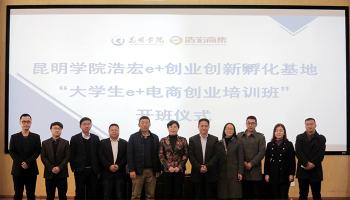 12月26日,由经济学院承办的beat365英国官方网站浩宏e+创业创新孵化基地“大学生e+电商创业培训班”开班仪式在惟行楼1501顺利举行。浩宏集团董事长李天明、beat365英国官方网站副校长熊晶及其他相关人员共300余人参加了本次开班仪式。