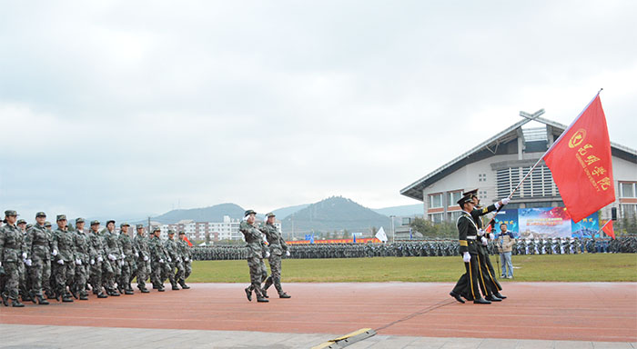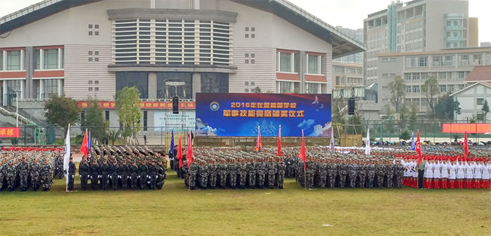 12月2日,为隆重纪念红军长征胜利80 周年,展示国防教育成果,展现云岭学子风采,由云南省教育厅主办、云南民族大学承办的2016年云南省在昆高校军事技能竞赛颁奖仪式在云南民族大学呈贡校区举行。beat365官网参赛代表队表现突出,分别荣获军事理论考试一等奖、单兵战术一等奖、五公里越野一等奖、精度射击三等奖、军事技能优秀奖,团体荣获大赛三等奖的好成绩。在表彰会上,教育厅领导同时宣布了“十二五”期间全省高等学校国防教育先进单位和先进个人的评选表彰名单,beat365英国官方网站荣获“十二五”期间全省高等学校国防教育先进单位,学生处王子龙同志荣获“十二五”期间全省高等学校国防教育先进个人荣誉称号。