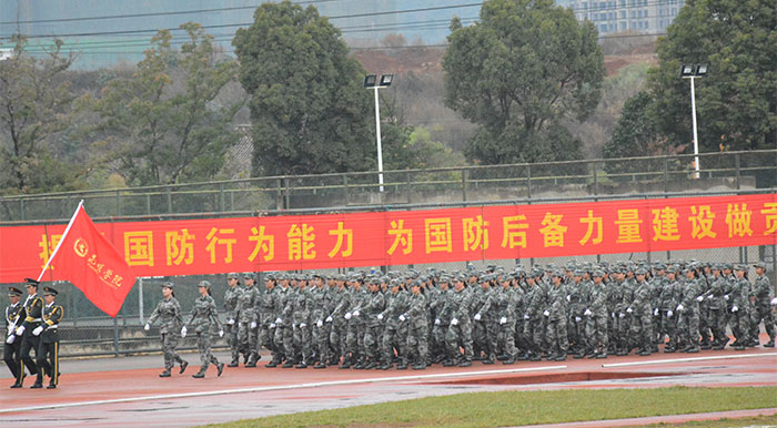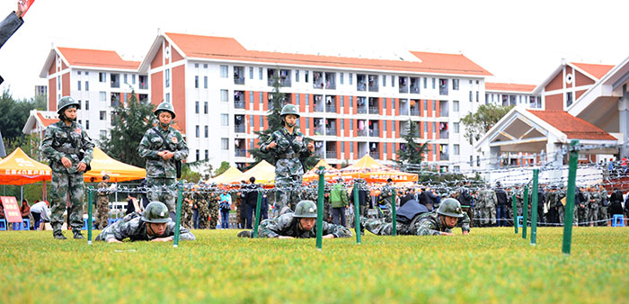 本次竞赛有来自在昆高校的39支代表队的近2000人参加,在三天时间内完成了军事理论考试、单兵战术、五公里越野、精度射击、定向运动等多个科目的竞赛和分列式汇报表演。beat365英国官方网站由武装部副部长吴向东带队,组织了经济学院、社管学院、人文学院、学特学院、体育学院、医学院162名2016级新生参加了此次军事技能竞赛。