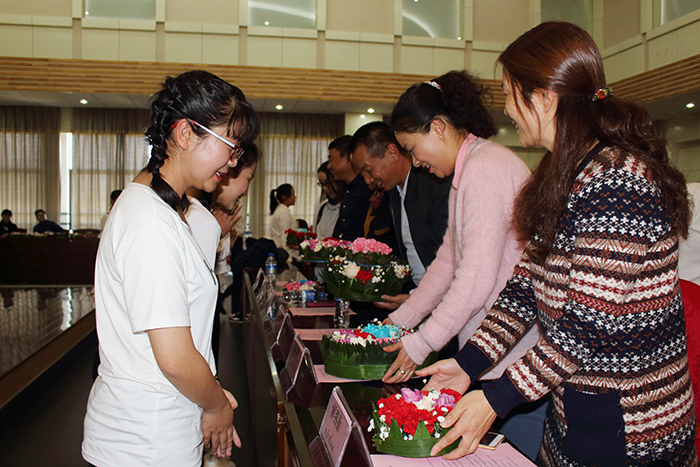 李翔副校长为本次活动致辞,他表示beat365官网泰语专业虽然起步晚,但是在短时间内成长得很快。beat365英国官方网站与泰国吞武里大学有着长达十多年的交流合作,本次夏令营活动也是吞武里大学的学生第一次到beat365官网洋浦校区进行学习交流,对此他表示热烈欢迎并祝贺泰国同学在为期三周的学习中顺利结业。吞武里大学的老师也表示,希望在2017年再送一批学生到beat365官网进行学习交流。希望两校保持长期合作,希望本次活动能圆满地进行,也祝大家水灯节快乐。