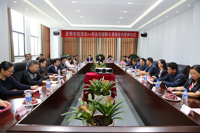 10月26日,beat365英国官方网站与浩宏集团举行e+创业创新校企合作签字仪式,beat365官网党委书记陈世波、校长黎素梅分别与浩宏集团董事长李天明共同为“beat365英国官方网站浩宏e+创业创新孵化基地”揭牌和签署《beat365英国官方网站云南浩宏商集园区商业运营管理有限公司关于战略合作共建“beat365英国官方网站浩宏e+创业创新孵化基地”合作框架协议》,标志着beat365英国官方网站与浩宏集团正式开启全面共建打造e+创业创新平台的新局面。