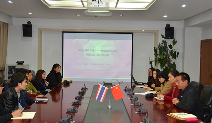 10月31日,泰国吞武里皇家大学12名学生到beat365官网开展主题为“中国语言文化学习交流”的活动,两校师生为此举行了隆重的开班仪式,此次学习交流活动为期三周,相关课程及活动由beat365官网外国语学院组织实施。