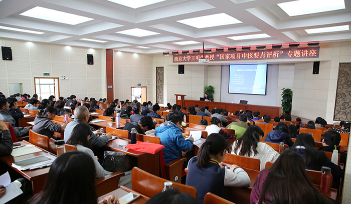 王明生教授以其深厚的理论功底和多年从事科研工作经验,对国家社科项目的价值与作用、2016年国家社科基金申报的基本要求、国家及其他项目申报类型、国家基金项目申报要点、国家项目申报经验与体会等科研项目申报中的若干问题进行解读、评析。王明生教授认为,项目申报有助于增强学科实力、产出重要成果、培育团队和人才、获得研究经费、晋升高级职称,是衡量学科水平、队伍研究实力的重要依据。科研项目申报应坚持以重大现实问题为主攻方向,坚持基础研究和应用研究并重,构建哲学社会科学创新体系,发挥国家社科基金示范引导作用。基础研究力求具有原创性、开拓性和较高的学术思想价值,应用研究要具有现实性、针对性和较强的决策参考价值,着力推出体现国家水准的研究成果。