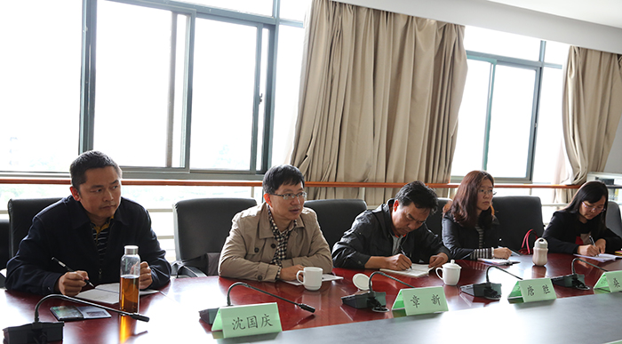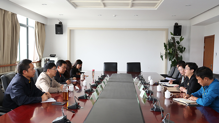 beat365官网熊晶副校长、计财处博斌处长、王荣林副处长及预算科、核算科、资金科负责人陪同客人座谈。