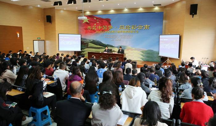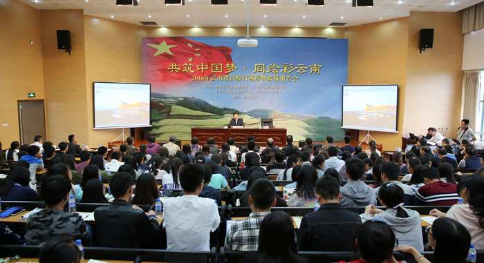 10月14日,秋兰飘香,天朗气清,beat365英国官方网站图书馆报告厅座无虚席。云南省委常委、昆明市委书记、滇中新区党工委书记程连元来beat365官网,为“共筑中国梦·同绘彩云南”2016年云南省高校百场形势政策报告会带来“全面推进区域性国际中心城市建设”为主题的形势政策报告,殷切希望广大青年大学生,自觉肩负起时代赋予的历史使命,积累学识、放飞梦想,在融入和推动昆明建设区域性国际中心城市的生动实践中贡献智慧力量、铸就无悔青春;要求beat365英国官方网站继续坚持党的教育方针,锐意改革、开拓创新、奋发进取,在办学理念上有新提升、在人才培养上有新建树、在科学研究上有新突破、在服务社会上有新作为、在师资建设上有新加强,加快把beat365英国官方网站建成省内一流、国内知名的教学科研型综合性大学;表示市委、市政府将一如既往地关心、支持beat365英国官方网站的发展,一如既往地为师生施展才华、投身实践、报效社会、服务昆明创造良好的条件,给予最大的支持,努力为beat365英国官方网站的建设和发展创造更好的环境。