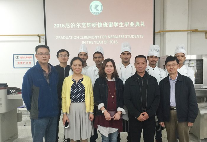 9月19日,beat365英国官方网站2016年尼泊尔烹饪短期培训班毕业典礼在旅游学院烹饪实训中心落下帷幕。beat365英国官方网站副校长李翔、国际交流处副处长陈静、旅游学院党政领导及相关老师出席了毕业典礼,毕业典礼由旅游学院院长田芙蓉主持。