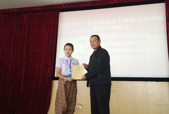 会上,李翔副校长,甘烹碧皇家大学副教授รศ.ดร.สุนทรีดวงทิพย์为中泰学生志愿者颁发奖状。