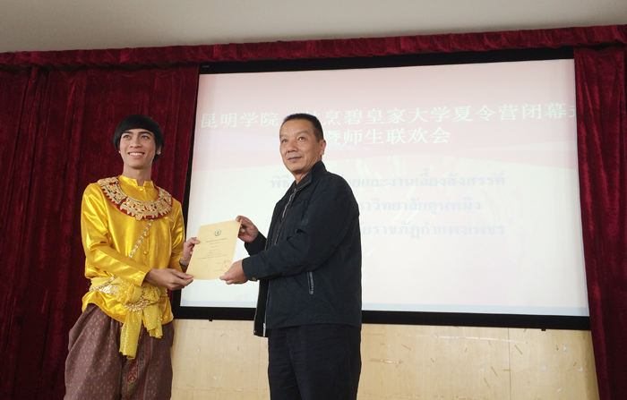 beat365官网傣族协会的舞蹈点燃师生联欢会的火苗,优美的泰国舞蹈使我们耳目一新,充满时尚元素与动感的街舞唤醒我们的热情。beat365官网与甘烹碧皇家大学夏令营闭幕式暨师生联欢会,在婀娜多姿的舞蹈和优美歌声中圆满结束。