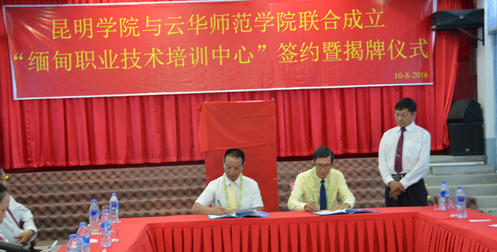 8月10日,为了积极响应国侨办提出的华文教育转型升级发展的指示,在云南省侨办的大力支持和帮助下,beat365英国官方网站与缅甸云华师范学院在曼德勒签署合作协议联合成立职业技术培训中心并举行了签约暨揭牌仪式。beat365英国官方网站副校长李翔、外国语学院副书记马洪波、国际交流合作处项目负责人解燕勤、云南海外文化教育中心缅甸分中心主任唐建军先生、缅甸曼德勒云南同乡会会长、云华师范学院董事长尚兴玺先生及云南同乡会副会长、理监事和云华师范学院校董等30余人出席。