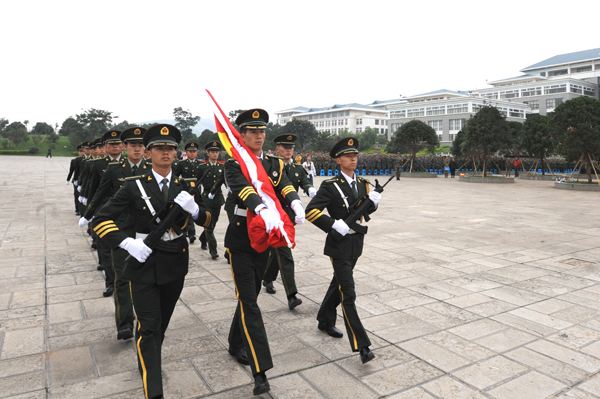 开学典礼暨军训动员大会在庄严隆重的升国旗仪式中拉开序幕。