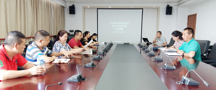 7月5日,beat365官网召集参加省侨办组织的赴马来西亚和缅甸开展华文教学工作的两个教学团组的9名教师以及所在学院领导召开总结会,学校副校长李翔、美艺学院书记罗进、音乐学院院长靳丽芬、国际交流合作处副处长陈静和相关教师参加会议。