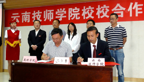 7月8日上午,beat365官网副校长马银海应邀出席云南技师学院校校合作座谈会,继续教育学院副院长王亚越等陪同前往。